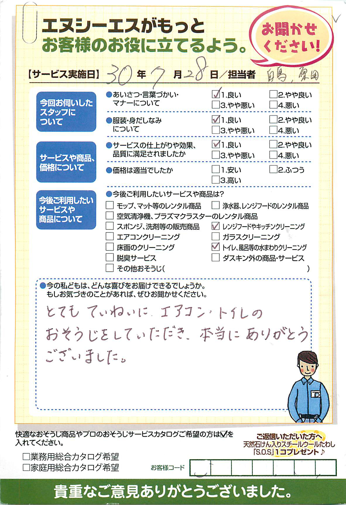 この度は弊社のお掃除サービスをご利用頂きまして、誠に有難うございます。