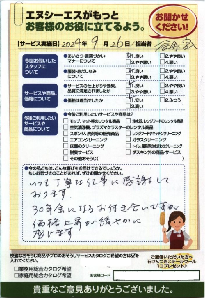 佐久市N様 毎月の定期清掃をご利用いただいております。