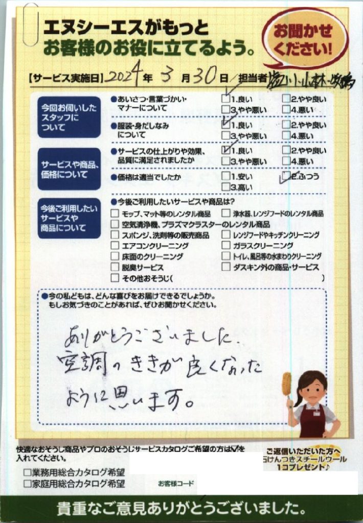 佐久市 K様 エアコンクリーニングをご利用いただきました。