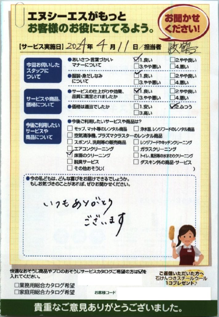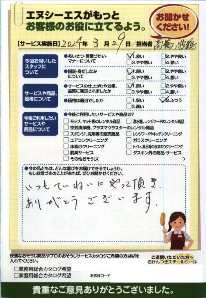 御代田町H様 家事お手伝いサービスをご利用いただきました。